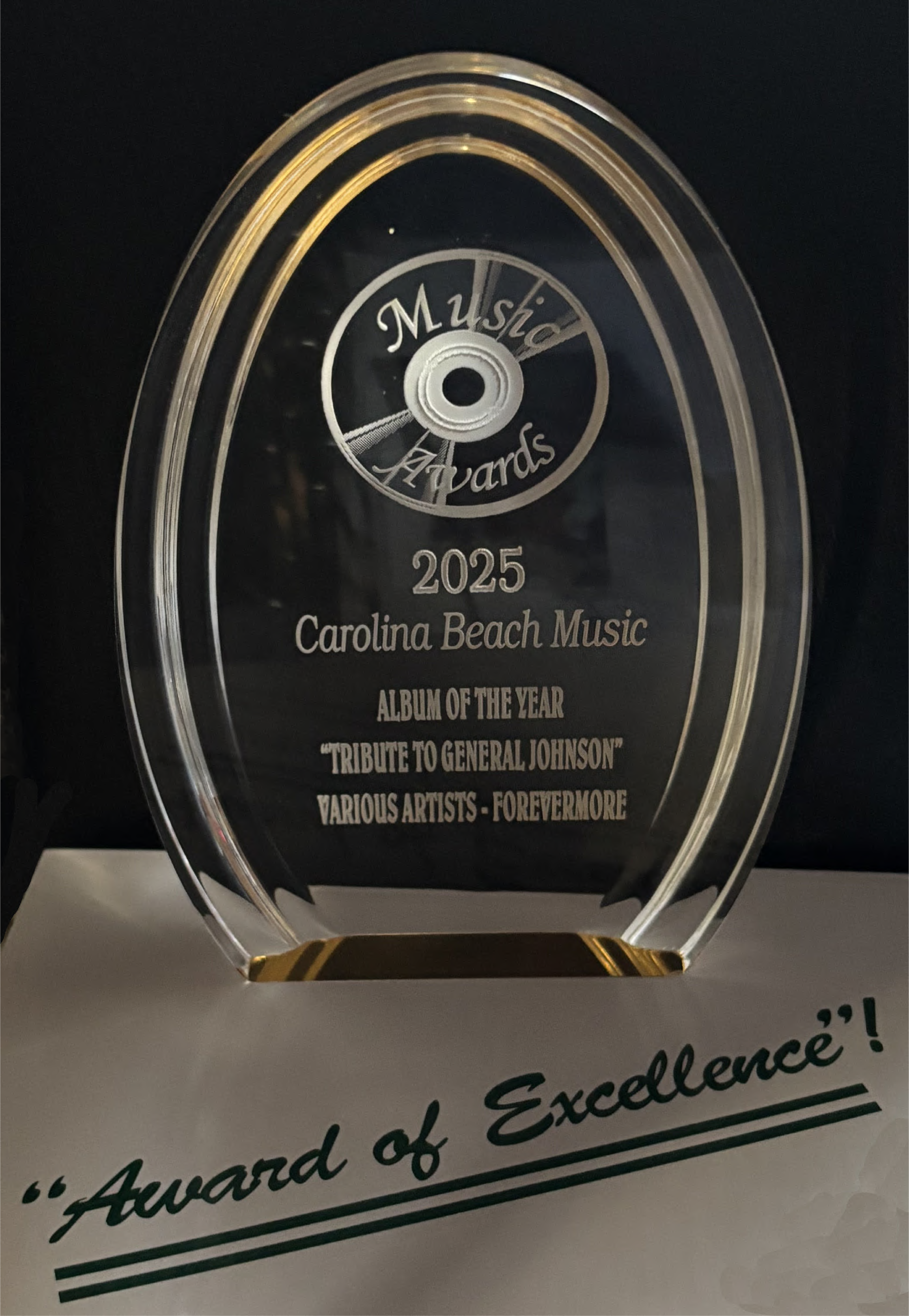 During the summer of 2025 we were asked by Chris Biehler, owner of Forevermore Music to record two Beach Music songs penned by Beach Music Legend, General Johnson. You may remember the General as the band leader of the Chairman of the Board. The songs were submitted for a compilation album entitled "Tribute to the General" The album included eighteen other artists each covering one of the Generals chart busting songs. The Nakeds had the honor and privilege of submitting two songs. On it's release the album went straight to number one on the Beach Music Charts. In honor of this achievement Forevermore Music and Producer Chris Biehler were Awarded 2025's Beach Music's Album of the year. In return the gracious Chris Biehler awarded all nineteen artists this award for there participation in this project. The album can be heard streaming on all Beach Music streaming music platforms. The Nakeds and I can not thank Chris enough for including us on historic Album.